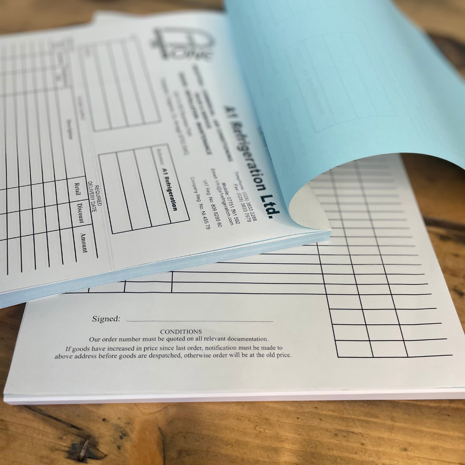 NCR Pads are perfect for personalised sales and purchase invoices or delivery notes for your business. Ideal for contractors and business owners and perfect for when a duplicate or triplicate is needed. Full Colour.